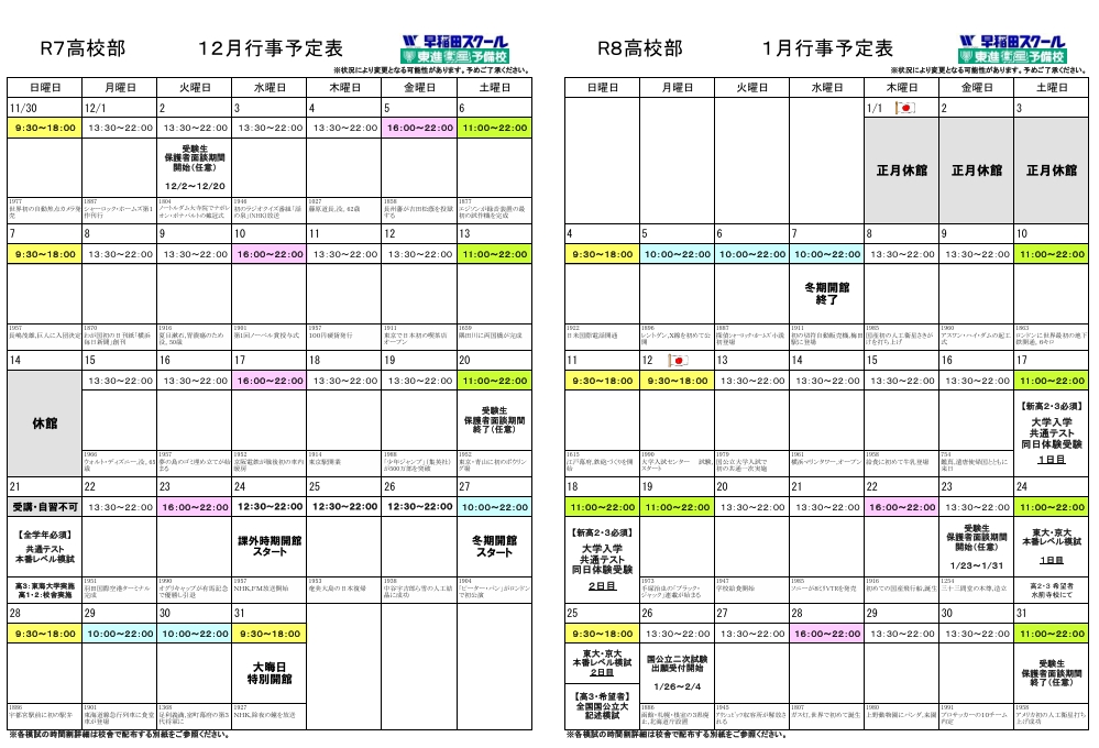 では、12-1月も校舎でお待ちしています!