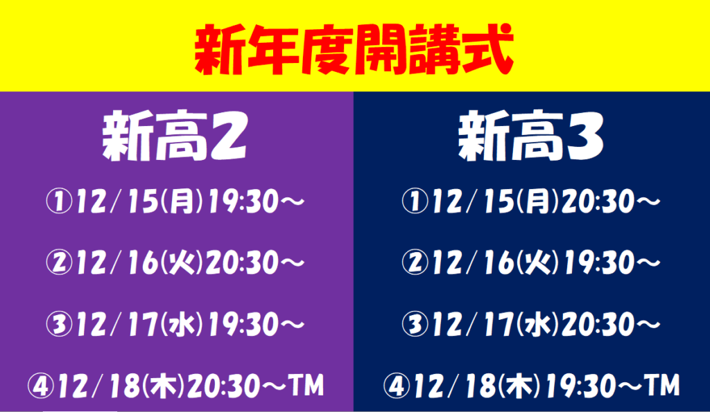 ということで12月は新年度開講式があります。